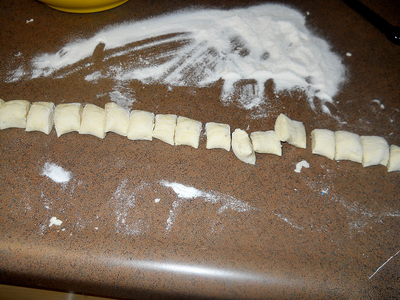 We have re-focused...again WIP, as I have always professed...Drop your segments AKA gnocchi into boiling water and cook until they float...You need ginormous man hands to get this close to boiling H20, and luckily I do possess those, so we're in business!! I managed to capture an action shot...Again, that luck thing...speaking of luck, where DID Puck go..winkety-wink... Nah, maybe we should just buy a PowerBall ticket...hahahahaha...
