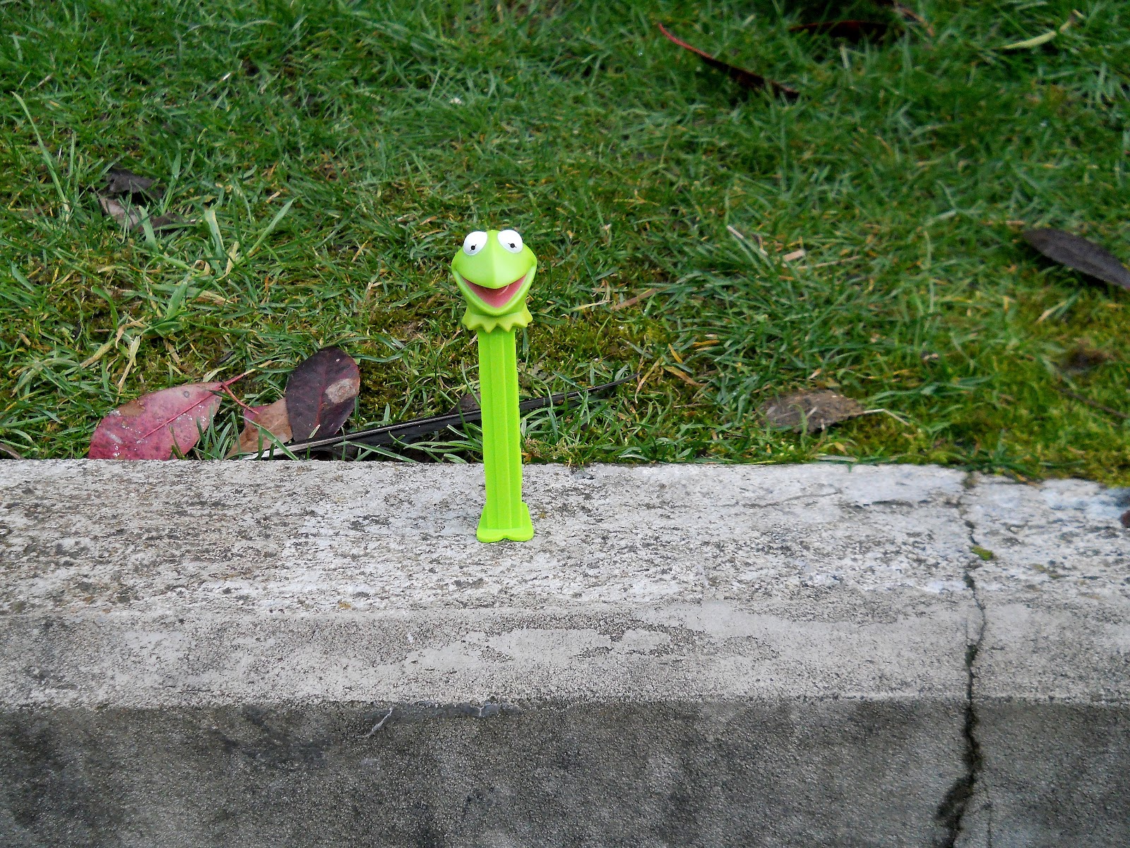 Here's a candid shot of Kermit enjoying the free organic coffee from the lobby of our apartment building.....AND, he was able to take a shower...he was a perfect fit underneath the H2O dispenser....and it WAS used with caution, and as the disclaimer stated...that water WAS hot!!! Yikes!!!!!! (and the individual whom was getting their mail in the lobby during this 'photo shoot' thinks I am a total crazy person...doesn't everyone have a pez and camera at all times...????)